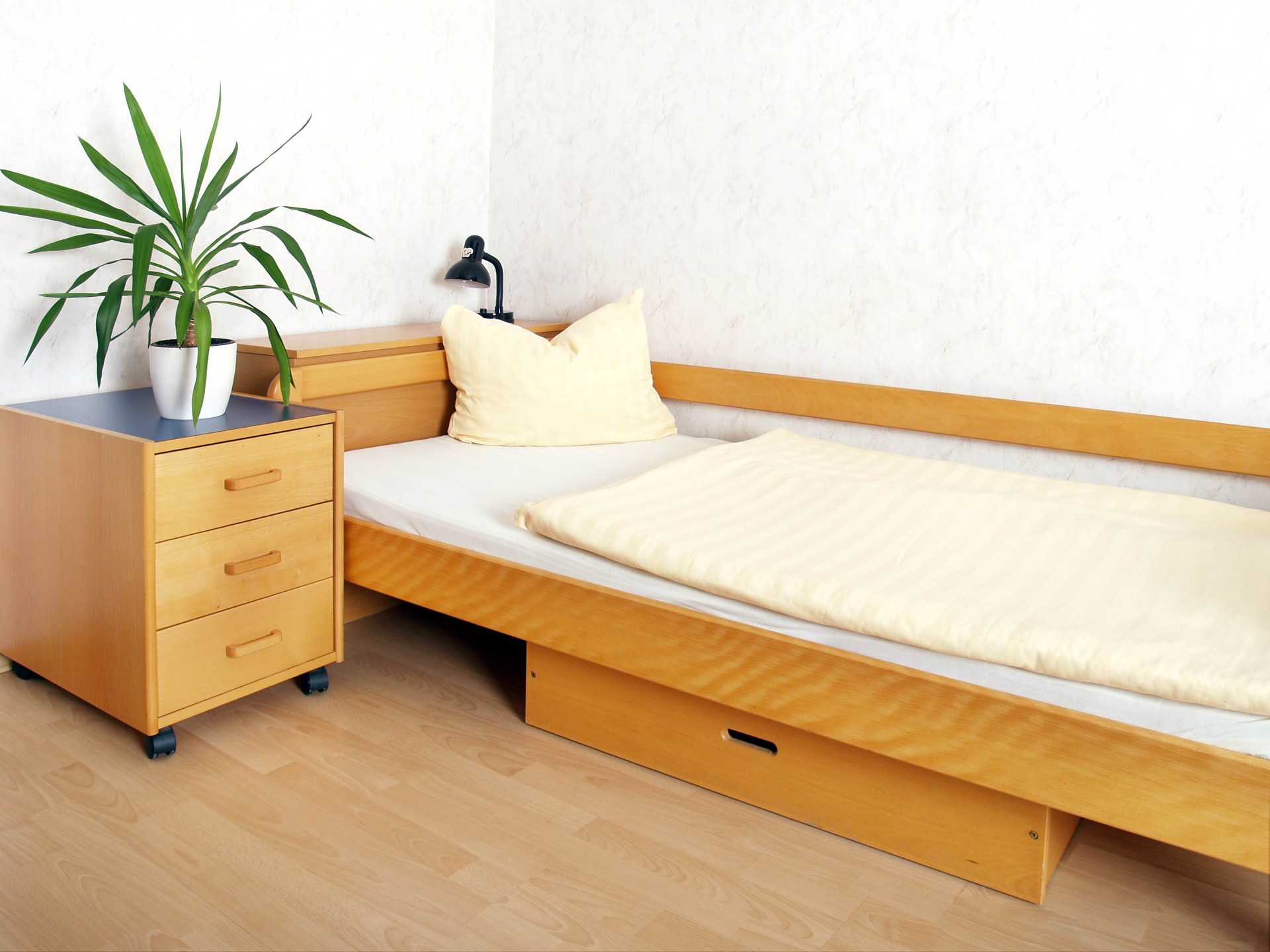 - Komplett möbliert: Bett inklusive Kissen, Bettdecke und Bettwäsche, Kleiderschrank, Schreibtisch, Regal und Stuhl