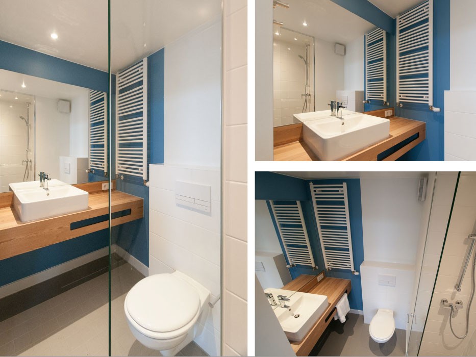 • Eigenes Bad: Dusche, Waschbecken, Spiegel und WC